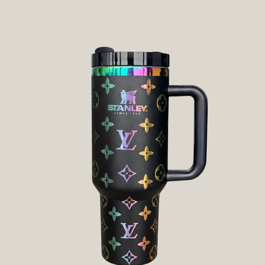 40oz Luxury-Inspired Quencher Tumbler – Rainbow Black