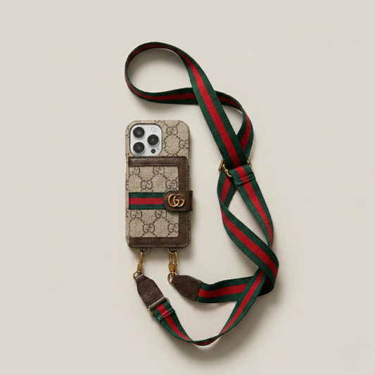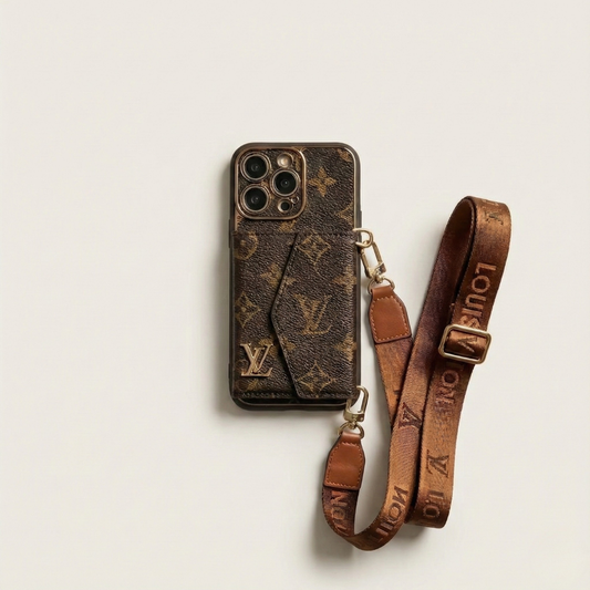 Luxury Leather iPhone Case with Integrated Wallet & Detachable Strap